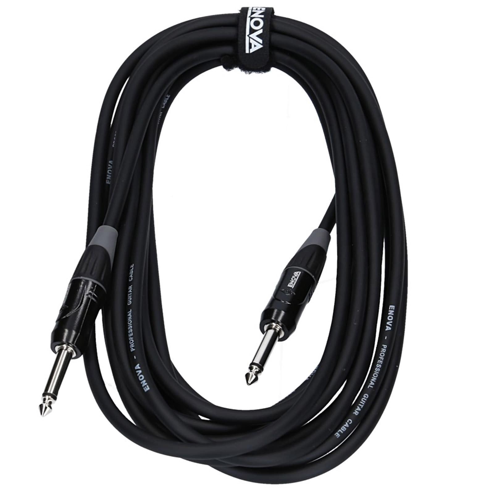 Flexibles 3 m Instrumenten Kabel mit schwarzem Aussenmantel und Klettverschluss.