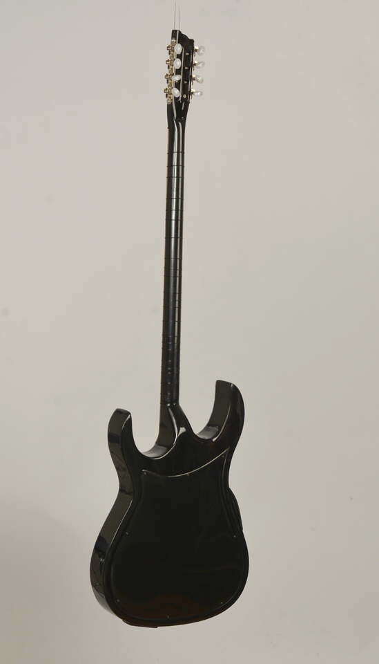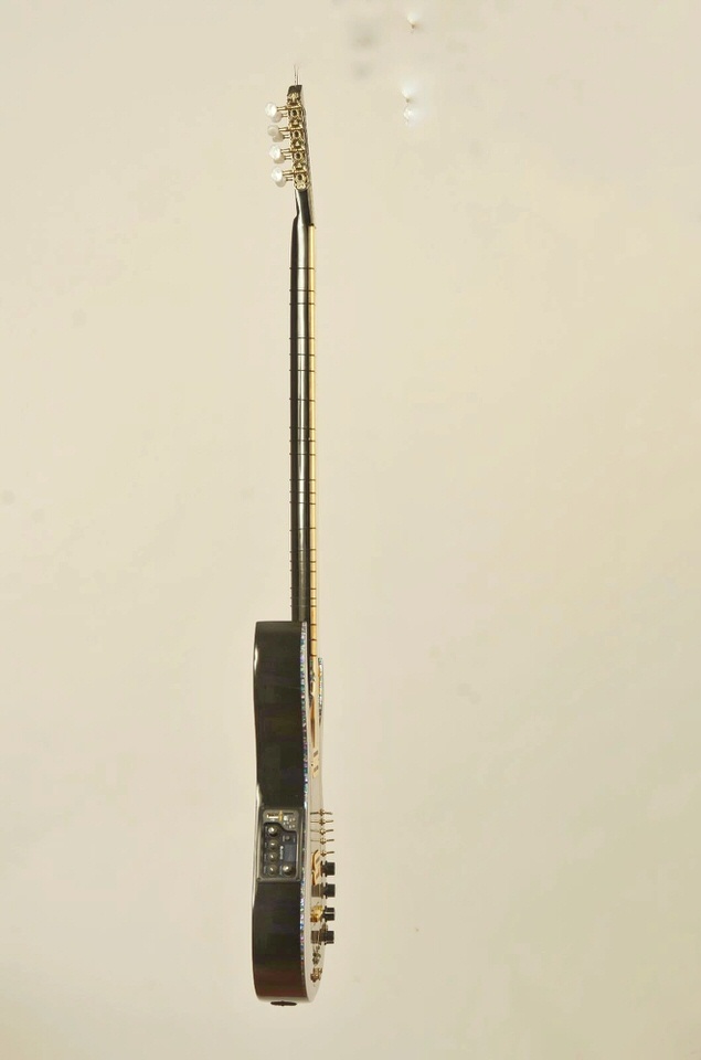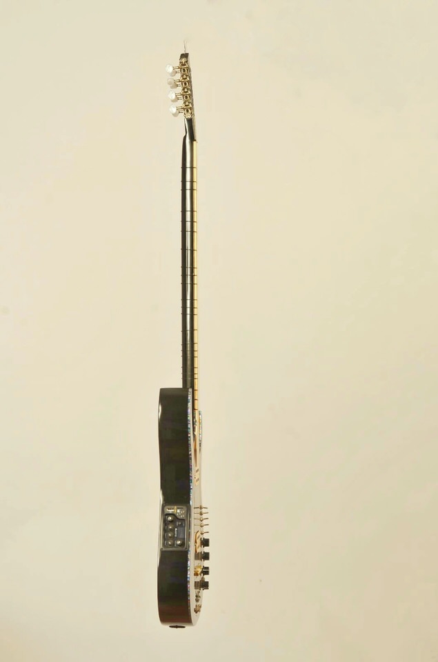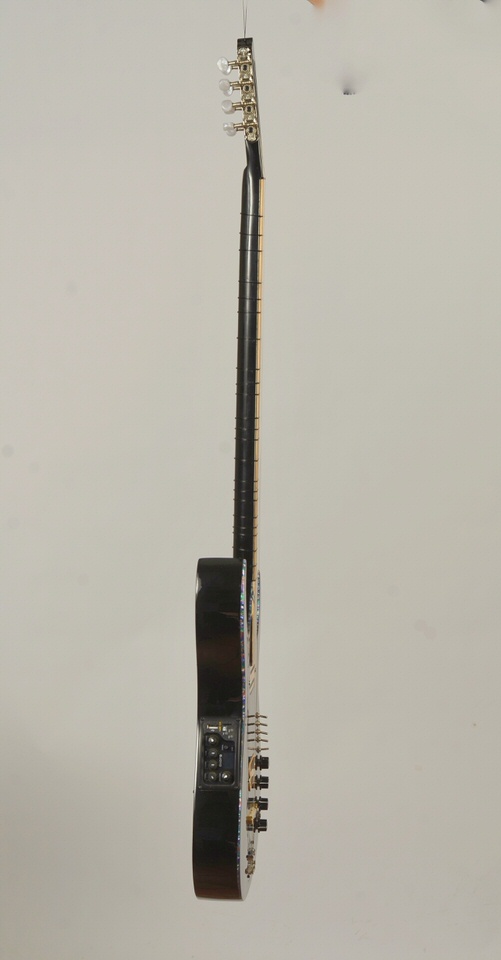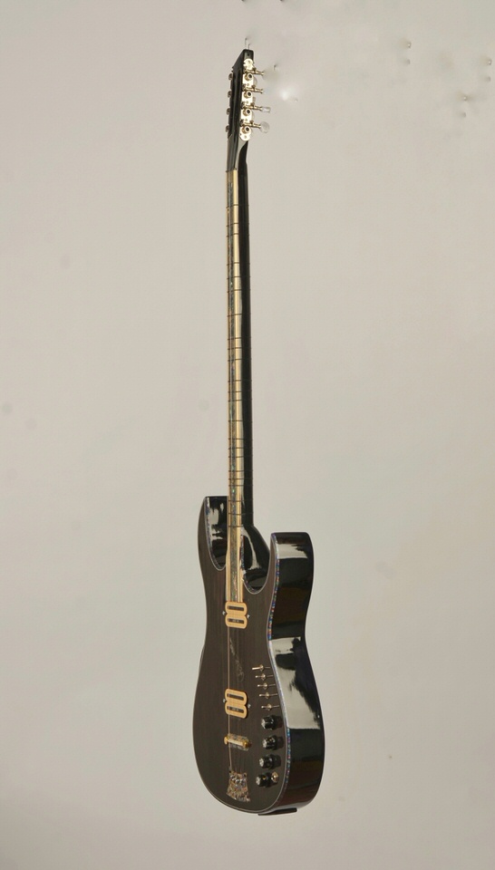 Der flache Korpus (Flacht) aus hochwertigem Wenge-Holz sorgt für ein angenehmes Handling und macht das Instrument besonders komfortabel für lange Spielsessions auf der Bühne. Die schwarze Fichtendecke (Spruce) liefert klare Höhen und eine starke Klangprojektion.